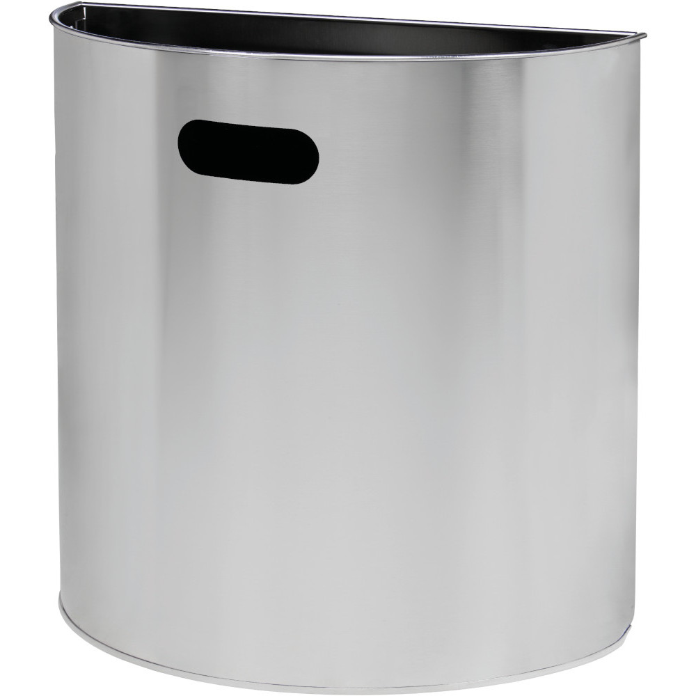 Der vordere Griff des kleinen halbrunden Wandkorbs aus gebürstetem Edelstahl ermöglicht eine einfache Handhabung, um den Korb von seiner Wandhalterung zu lösen. Dies erleichtert das Entleeren und die Handhabung des Korbs bei der Wartung.