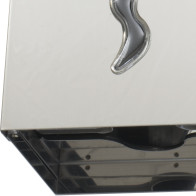 Verteiler aus Edelstahl 304 für ineinander verschlungene Blätter für Sanitäranlagen. Gesichert durch Schließung mit Schlüssel. Kapazität von 500 Blättern. Restblätter sichtbar dank eines Sichtfensters. Befüllung von unten. Papiernachfüllung auf dieser Seite verfügbar.