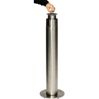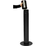 Der Säulen-Aschenbecher ist ein Standascher mit einer epoxidbeschichteten Edelstahloberfläche. Er ist mit einem Innenbehälter aus Edelstahl ausgestattet, der einen Henkel hat und ein Fassungsvermögen von 4 Litern besitzt. Um Sicherheit zu gewährleisten und Vandalismus vorzubeugen, ist der Aschenbecher mit einem sicheren Verschluss mit Schlüssel ausgestattet. Auch das ästhetische Erscheinungsbild wird mit einer frontalen Siebdruckbeschriftung „Zigarette“ nicht vernachlässigt. Zum Schutz des Bodens ist der Aschenbecher mit Kunststoffgleitern isoliert. Er wird an 4 Punkten am Boden befestigt (Befestigungsmaterial nicht enthalten). Für maximale Stabilität ohne Bodenbefestigung ist eine optionale Basis aus Kunststoff mit einem Durchmesser von 360 mm und einem Gewicht von 7,3 kg, mit einer Edelstahlabdeckung, erhältlich.