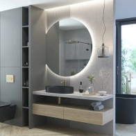 Der vertikal geschnittene runde Spiegel ist eine elegante und praktische Lösung, um den Raum in Ihrem Badezimmer zu optimieren.
