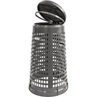 Der runde Sicherheitskorb Bi-Flux ist für öffentliche Orte mit hohem Risiko konzipiert. Er ist speziell für die Vigipirate-Normen entworfen und kann zwei Müllsäcke mit je 60 Litern fassen. Der Sicherheitskorb ist mit einer Bodenbefestigung, einem sichtbaren Sack zur Sicherheit und einer optionalen schrägen Regenhaube ausgestattet. Dieser große Mülleimer ist ideal für stark frequentierte Umgebungen.