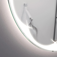 Eleganter runder Spiegel mit seitlicher Beleuchtung, erhältlich in den Durchmessern 53 cm und 63 cm. Runder Spiegel, der die rechteckigen Formen der Räume durchbricht. Dieser Spiegel wird Ihr Badezimmer sanft erhellen. Zahlreiche Eigenschaften können hinzugefügt werden, um einen einzigartigen und personalisierten Spiegel zu schaffen.