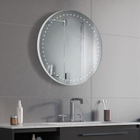 Betonen Sie Ihre Schönheit mit unserem runden Spiegel, der mit einem dezenten Ring aus Lichtpunkten ausgestattet ist, ideal für Schminkbereiche oder angenehme Badezimmer!