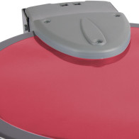 Korpus aus verzinktem Stahl mit grauer Korrosionsschutzbeschichtung. Kann drinnen und draußen verwendet werden. Mit offenem Deckel oben. Deckel in wählbarer Farbe mit eingelassenem Logo. Integrierter Inneneimer.