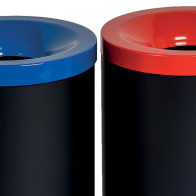120-Liter-Mülleimer mit selbstlöschendem Deckel aus lackiertem Stahl.