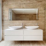 Der Spiegel mit 3 feinen maßgefertigten LED-Streifen eignet sich für moderne Badezimmer. Seine schlichte und effektive Linie erfüllt perfekt ihre Aufgabe, indem sie eine gleichmäßige Beleuchtung bietet.