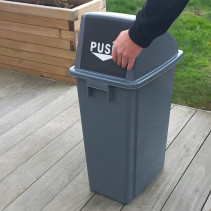- Welche Arten von Abfällen kann ich mit diesem Müllbehälter trennen? Sie können Papier, Kunststoff, Glas und organische Abfälle trennen.
