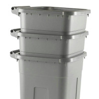 Ausgestattet mit zwei Rollen von 120 mm Durchmesser und einem integrierten Tragegriff ist dieser Behälter leicht zu bewegen, selbst wenn er voll ist. Sein stapelbares Design ermöglicht eine effiziente Lagerung und spart Platz, wenn er nicht in Gebrauch ist, was besonders in Umgebungen nützlich ist, in denen der Platz begrenzt ist.