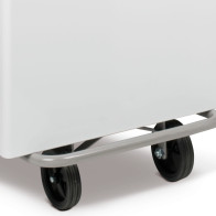 Die robusten Räder aus hartem Kunststoff, ausgestattet mit Gummilaufflächen, bieten eine außergewöhnliche Manövrierfähigkeit, selbst auf unebenen Oberflächen. Ihre Größe von Ø125 mm sorgt für optimale Stabilität beim Bewegen.