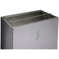 Dieser Behälter ist speziell für Damenbinden konzipiert. Hergestellt aus gebürstetem Edelstahl AISI 304, garantiert er Langlebigkeit und Hygiene. Sein Pedalmechanismus ermöglicht das Öffnen des Deckels ohne Handkontakt, was eine praktische und hygienische Nutzung gewährleistet. Nach Betätigung öffnet sich die Klappe geräuschlos für eine diskrete Entsorgung der Binden. Zur Sicherheit und Hygiene wird der Deckel mit einem Metallschlüsselschloss verriegelt, um unbefugten Zugriff auf den Inhalt zu verhindern.