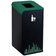 It features a green lid to identify glass bottles and an optional kit of four Ø 40 mm wheels (2 wheels with brake).