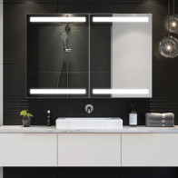 The custom LED mirror cabinet offers a perfect combination of functionality and innovative lighting for any bathroom. Its integrated lighting enhances visibility for facial care. The quality of craftsmanship is highlighted with particular attention to detail.