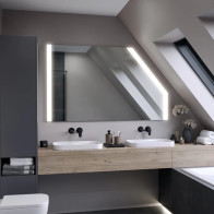 The configurable illuminated loft mirror features 2 vertical LED strips on each side of the glass, making it ideal for installation in the attic under the roof of your home. The cut can be sized according to your needs and numerous options allow you to configure the different available choices.