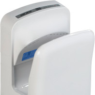 This intelligent white air-blast hand dryer ensures optimal hygiene thanks to its touch-free system. It features an activatable heating element, offering additional comfort in cold environments, while allowing energy savings when deactivated.