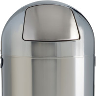 Waste bin with a tilting flap, 52 litres, with a silver-painted steel dome top. Inner bin made of galvanised steel. Plastic base to protect the floor.