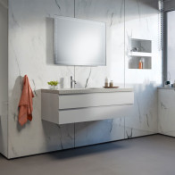 The custom-made light+ rectangular mirror is an exceptional product for illuminating dark bathrooms. Its luminous frame and wide top band add a touch of elegance and functionality.