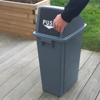 With a 60-litre bin and a lid with a slot for paper and brochures in plastic.
