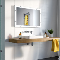 With its wide surrounding LED strip, this mirror provides powerful lighting. The aluminum frame is available in two colors: silver or black. This mirror is configurable in width and height and also includes numerous options.