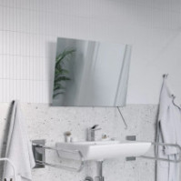 The LED designs of this frame-shaped mirror create an elegant and understated mirror. It will suit a sleek and modern bathroom. The aluminium frame is available in two colours, silver or black. This mirror is configurable in width and height and also contains many options.