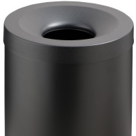 The 50-litre fire-resistant bin with black body and white lid is designed for practical and safe use in professional spaces such as offices and reception areas. Its epoxy powder-coated steel body ensures durability and resistance. The contrast between the black body and the white lid offers a sober and professional aesthetic.