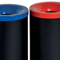 Epoxy powder-coated steel body for maximum durability. Colour: elegant black with a contrasting white lid. Capacity: 50 litres, ideal for common areas such as offices or reception areas.
